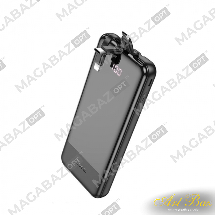 Внешний аккумулятор 10000 mAh HOCO (1 USB 2000 mAh micro+Type-C+Lightning) дисплей черный (J114)