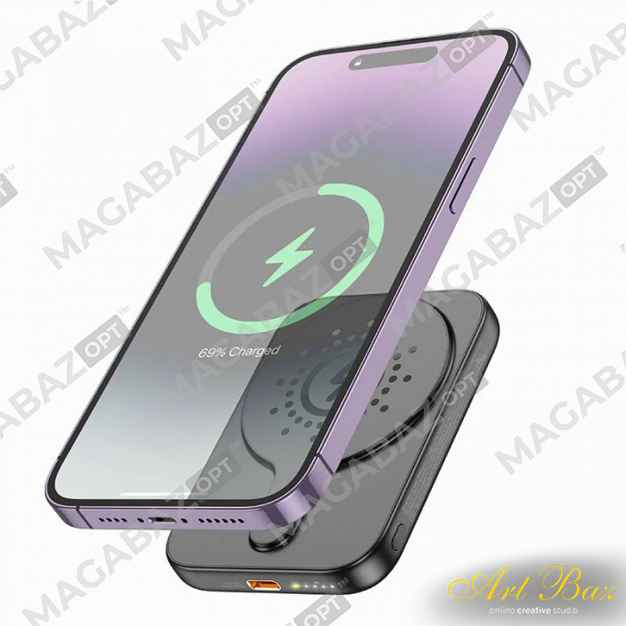 Внешний аккумулятор + MagSafe + быстрая зарядка 5000 mAh HOCO (USB Type C на Type C 2000 mAh) индикатор 20W черный (J117)