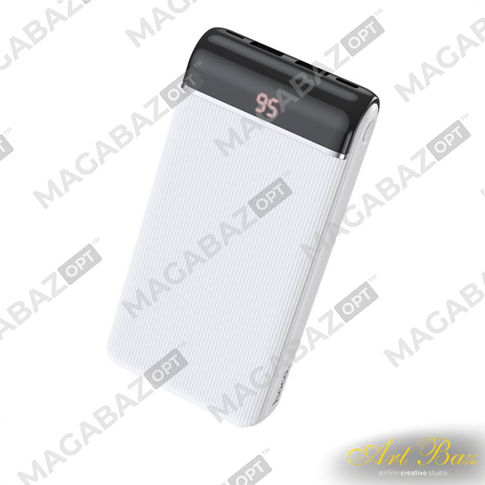 Внешний аккумулятор 20000 mAh HOCO (1 USB 2000 mAh+Type-C+ micro+Lightning) дисплей белый (J59A)