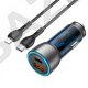 УЗУ Блок авто выходы USB Type C 4300 mA/USB 4300 mA + usb кабель Type C на Lightning с подсветкой HOCO NZ8 синий