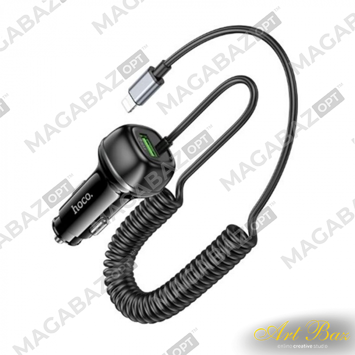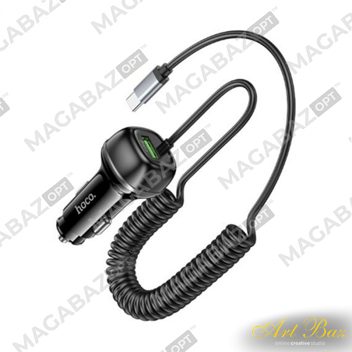 УЗУ Блок авто выходы USB Type C 3000 mA/3000 mA + usb кабель Type C на Type C HOCO Z48 серый