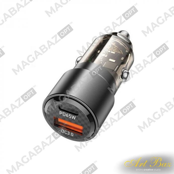 УЗУ Блок авто выходы USB Type-C 2100 mA + usb кабель micro Borofone BZ49A серый