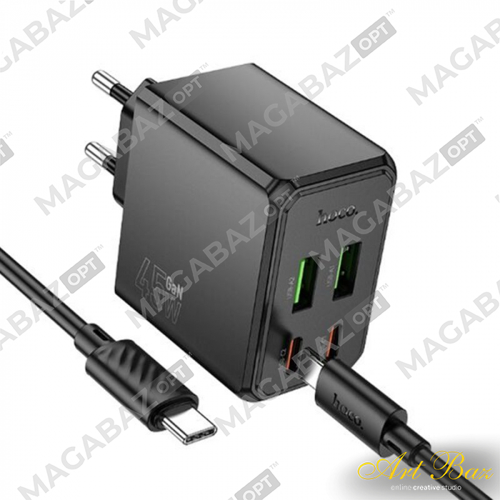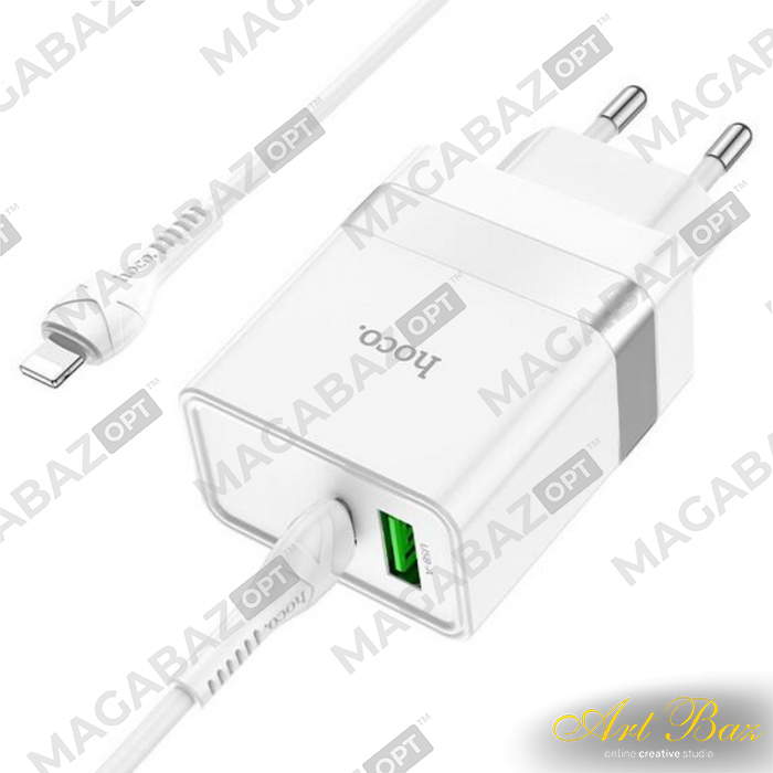 УЗУ блок-сеть выходы Type-C 3000 mA/USB 3000 mA + usb кабель Type-C на Lightning HOCO N21 Extension 30Вт PD белый QC3.0