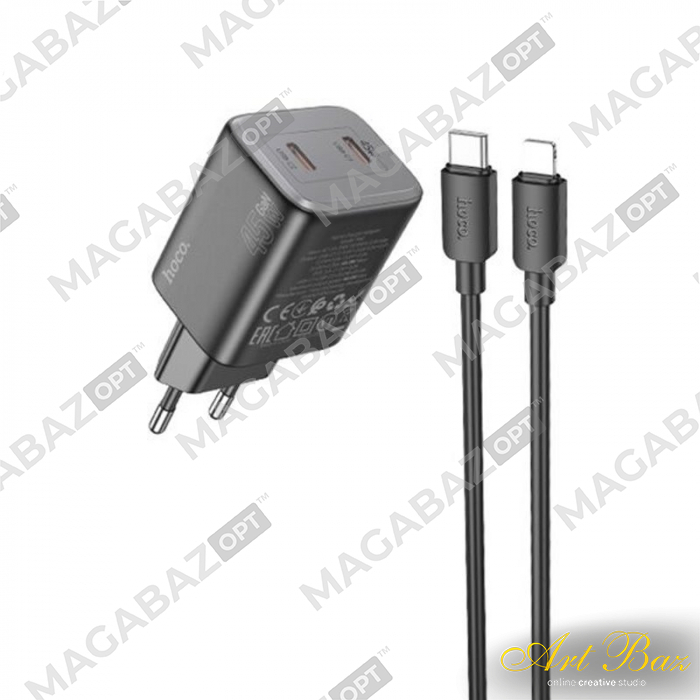 УЗУ блок сеть выходы 2 Type C 3000 mA + usb кабель Type-C на Lightning HOCO N42 Elogiado PD 45Вт черный