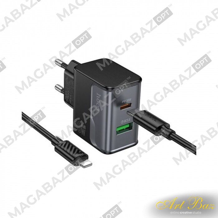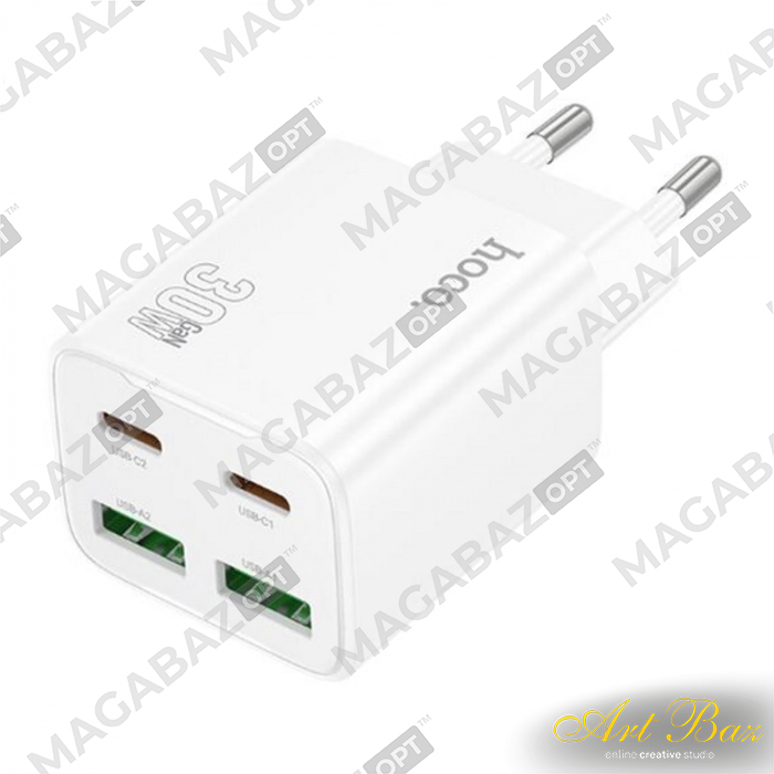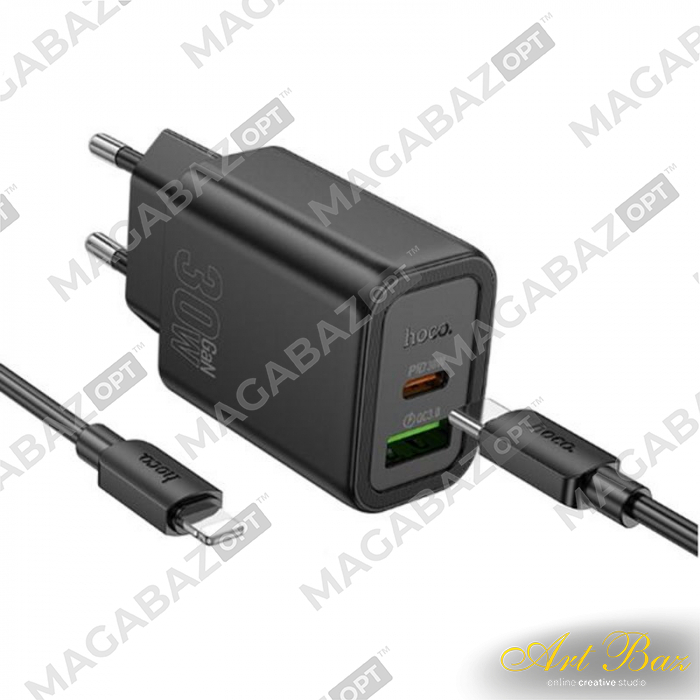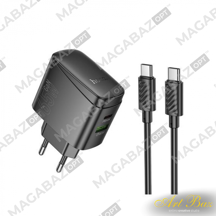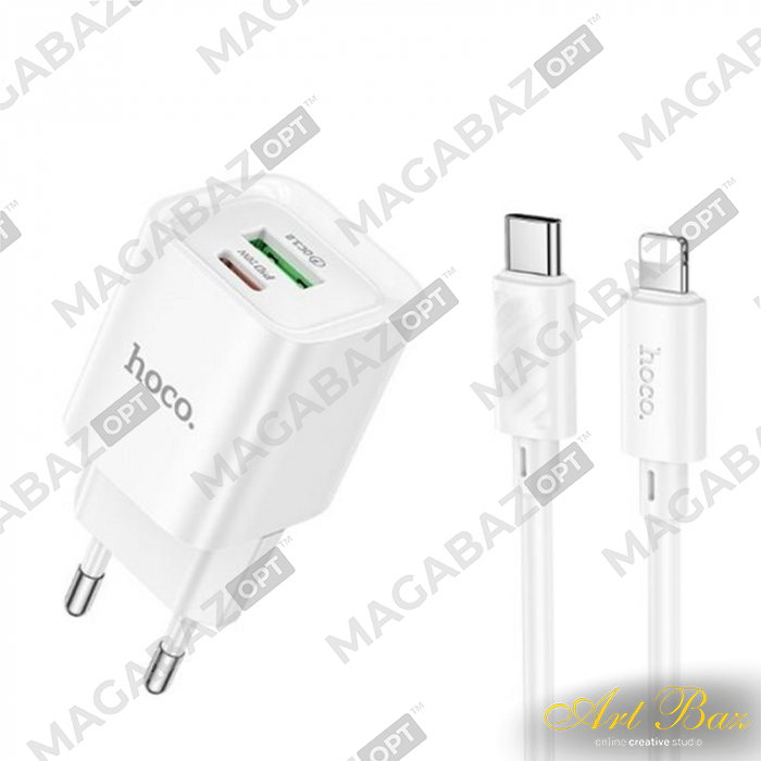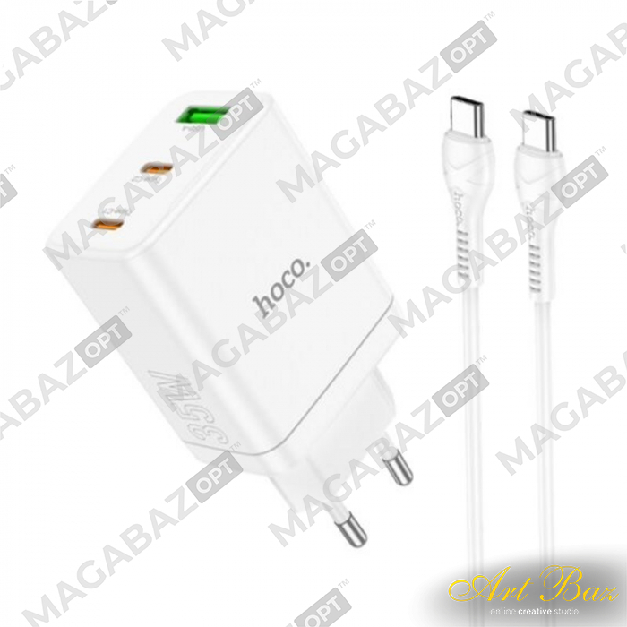 УЗУ блок сеть выходы 2 Type C 3000 mA/USB 2000 mA + usb кабель Type-C на Type-C HOCO N33 Start 35Вт PD3.0 белый QC3.0