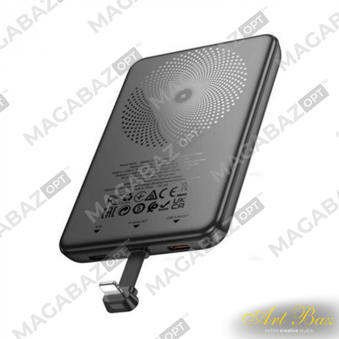 Внешний аккумулятор + УЗУ беспроводное 5000 mAh HOCO (2 USB 2400 mAh+ кабель Lightning) PD20W черный (J133 Triumph)
