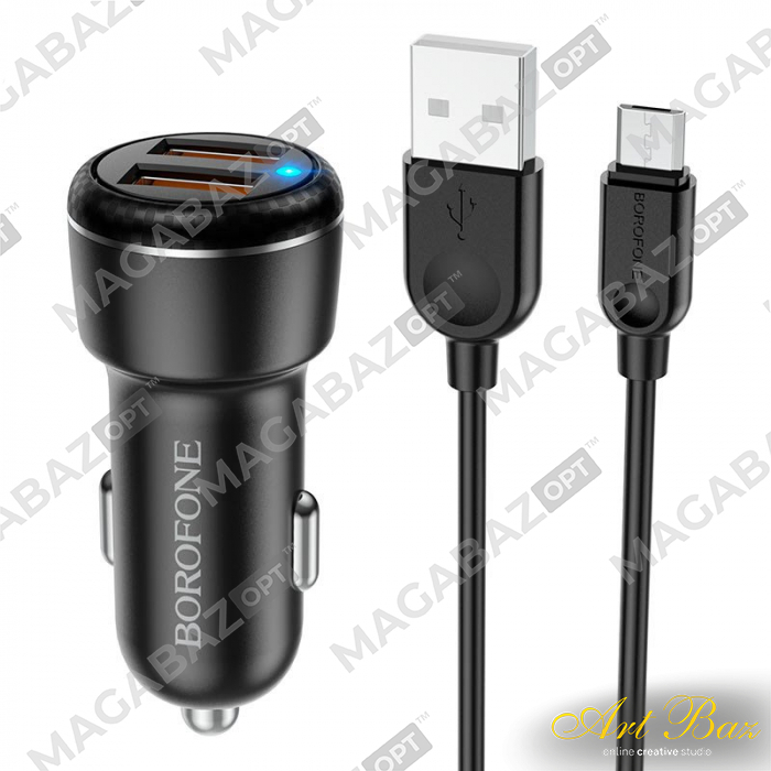 УЗУ Блок авто выходы USB Type C 2500 mA/USB Type C 2500 mA Borofone BZ31D Solid PD 60Вт черный
