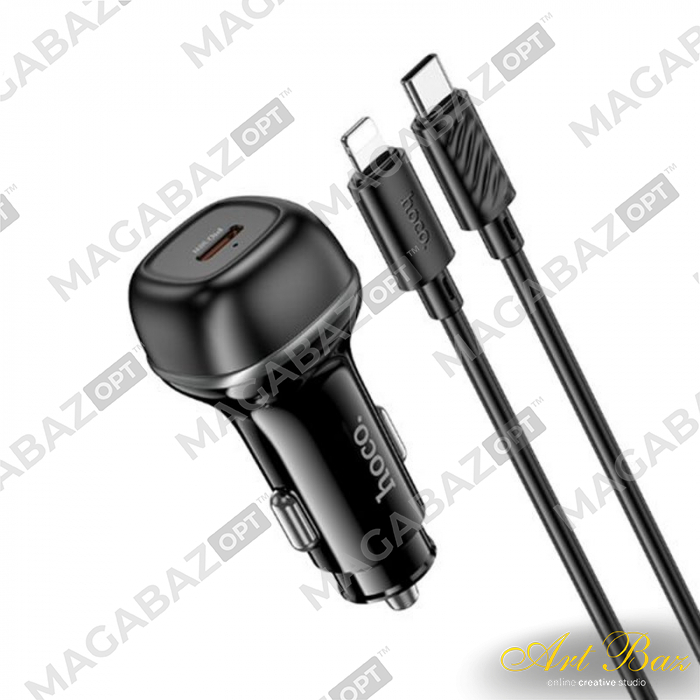 УЗУ Блок авто выходы USB Type C 2100 mA + usb кабель Type C на Lightning HOCO Z58 Rank PD30W черный