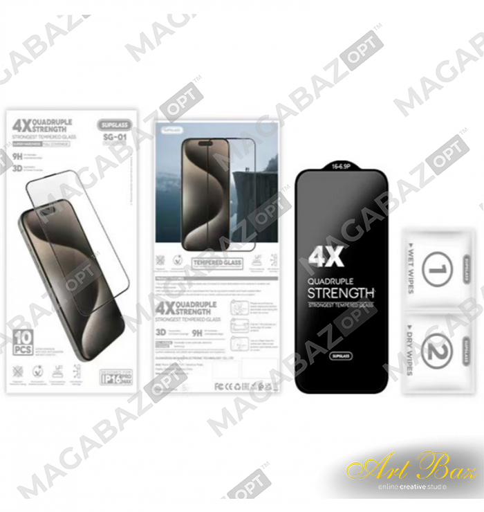 Защита дисплея Apple- iPhone 17 PRO Max 2.147 стекло Supglass SG-01 4X черное ПОЛНЫЙ КЛЕЙ (кратно по 10)
