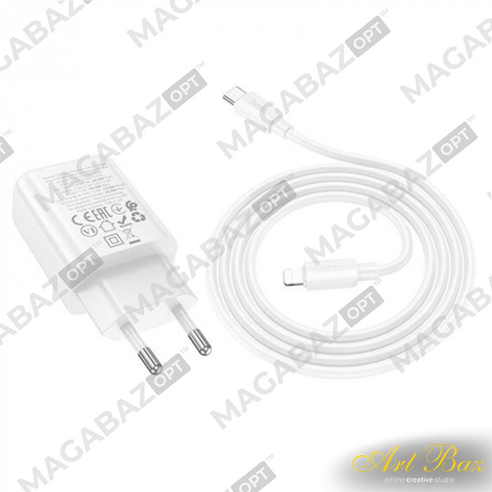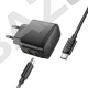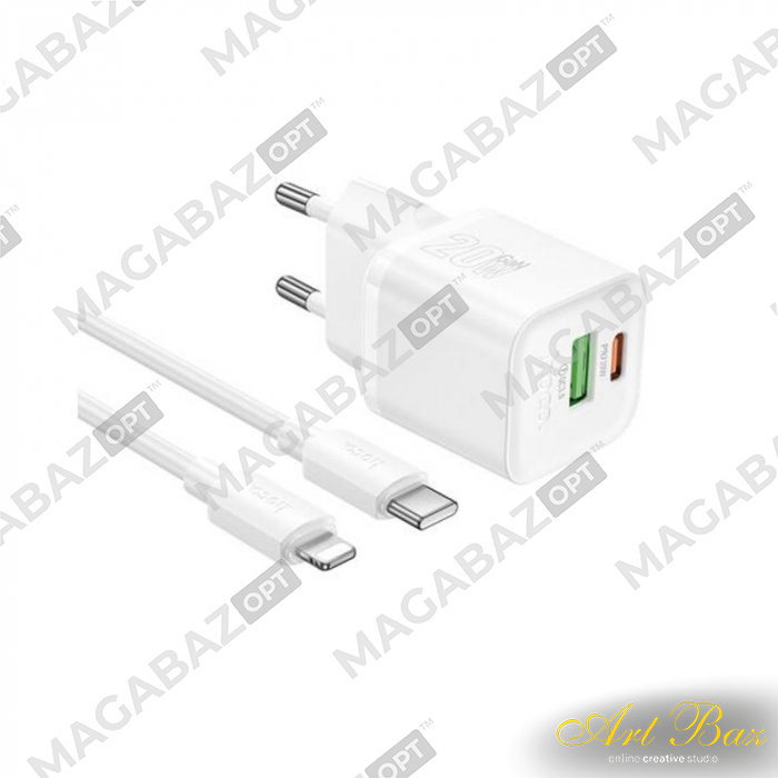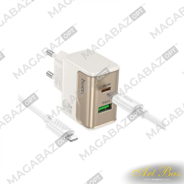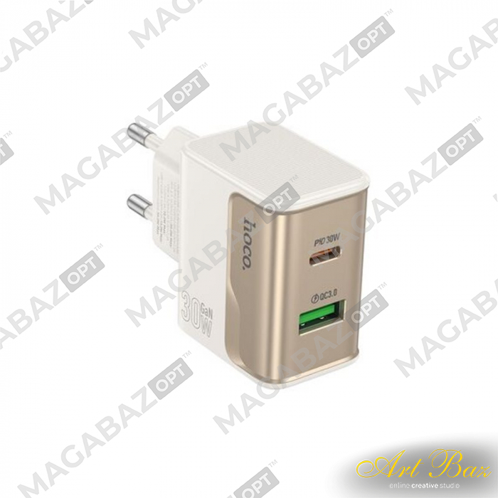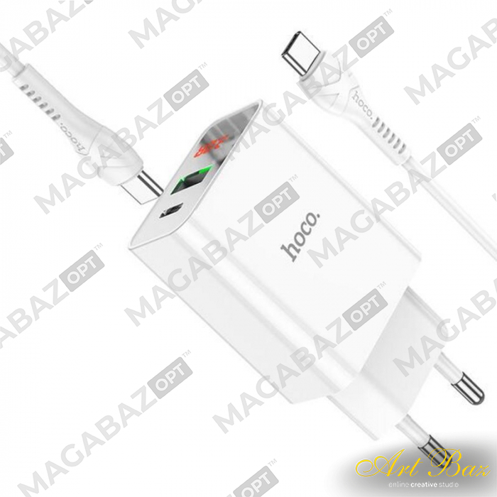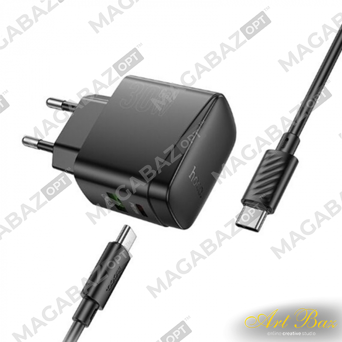 УЗУ блок-сеть выходы Type-C 3000 mA/USB 3000 mA + usb кабель Type-C на Type-C HOCO CS61A Bright PD30W черный QC3.0