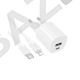 УЗУ блок-сеть выходы Type-C 3000 mA/USB 3000 mA + usb кабель Type-C на Lightning Borofone BA104A Pudding Series 20Вт PD FCP AFC белый QC
