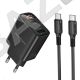 УЗУ блок-сеть выходы Type-C 3000 mA/USB 3000 mA + usb кабель Type-C на Type-C Borofone BA96A Ilustre 5V 3.0A PD20W черный QC3.0