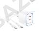 УЗУ блок-сеть выходы 2 Type-C 3000 mA + usb кабель Type-C на Type-C Borofone BA90A Destello 45Вт PD45W FCC AFC белый QC3.0