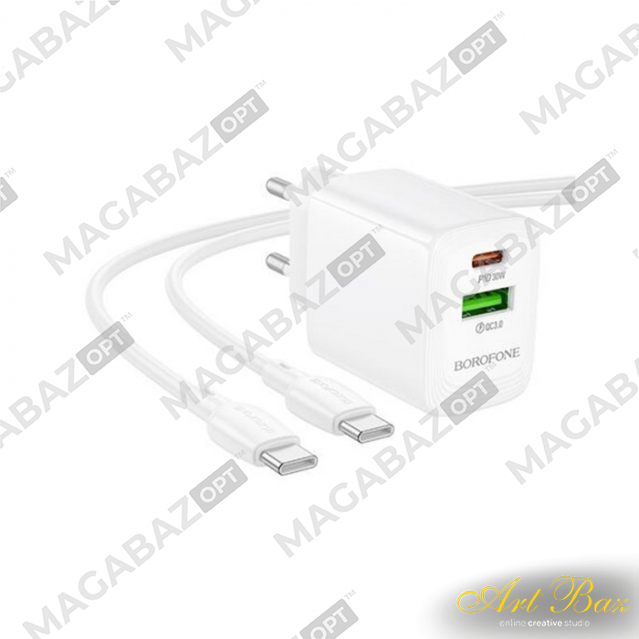 УЗУ блок сеть выходы Type C 3000 mA/USB 2000 mA + usb кабель Type-C на Type-C Borofone BN29 Fuente PD 30Вт белый QC3.0