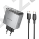 УЗУ блок сеть выходы 2 Type C 3000 mA/USB 2000 mA + usb кабель Type-C на Type-C Borofone BN22 Lena 65Вт PD FCP AFC серый QC3.0