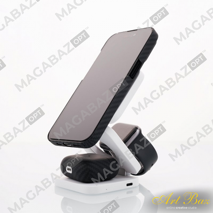 УЗУ беспроводное 3 в 1 для Apple Magssory Flex белое