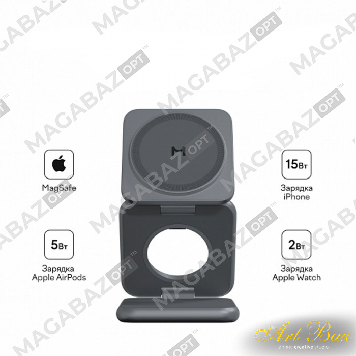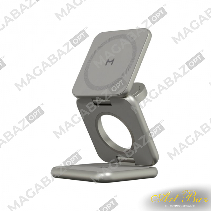 УЗУ беспроводное 3 в 1 для Apple Magssory Basketball серебристое Qi2
